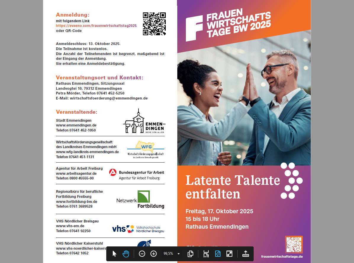 Veranstaltung im Rahmen der landesweiten Frauenwirtschaftstage am Freitag, 17. Oktober 2025 von 15.00 bis 18.00 Uhr im Rathaus Emmendingen