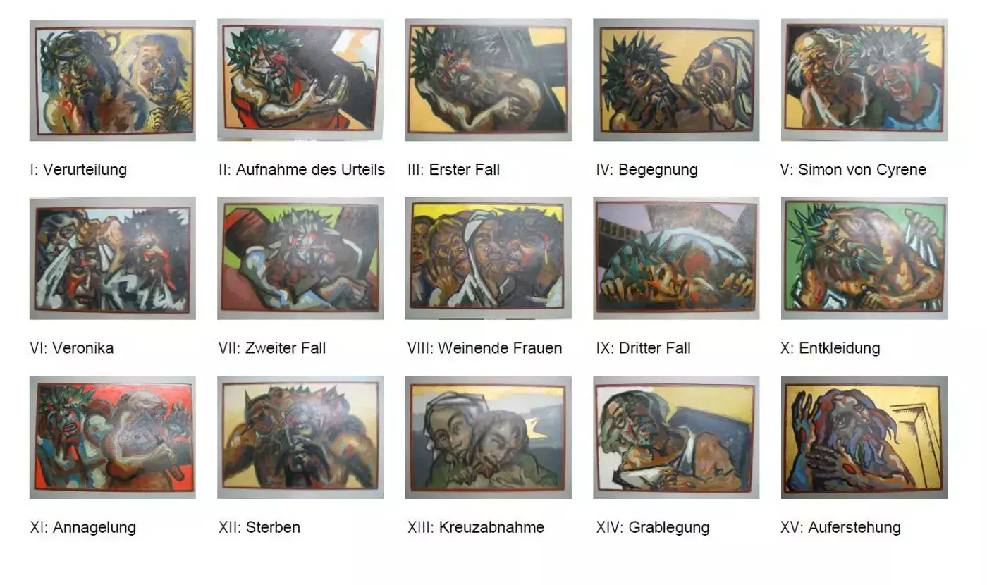 Zitat von Pfarrer Hundeck, Laurentiuskirche Berlin:„Die Interpretation des Kreuzweges durch den Künstler selbst, sie ist die Niederschrift eines leicht gekürzten Tonbandprotokolls, bei dem bewusst der persönliche Redestil des Malers unangetastet gelassen wurde; daraus erklären sich die vielen Unebenheiten im Satzbau, sie werden aufgehoben durch die ursprüngliche Kraft seiner Aussage.“